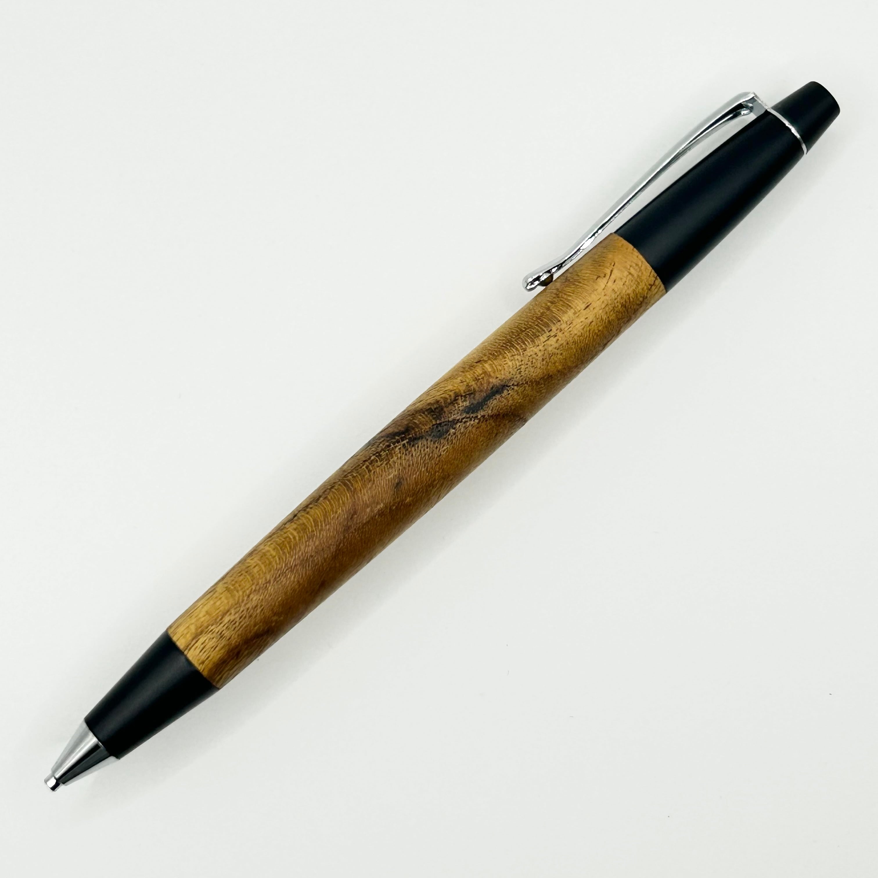 本製品は天然木を使用しています。木目や色合いは樹種や部位によって異なり、わずかな凹凸や節、模様の変化が見られる場合があります。特に瘤材は自然の節が出ることがありますが、基本的にはそのまま仕上げています。ペンの使用に支障がある場合は修正しますが、個性としてご理解いただける方におすすめです。